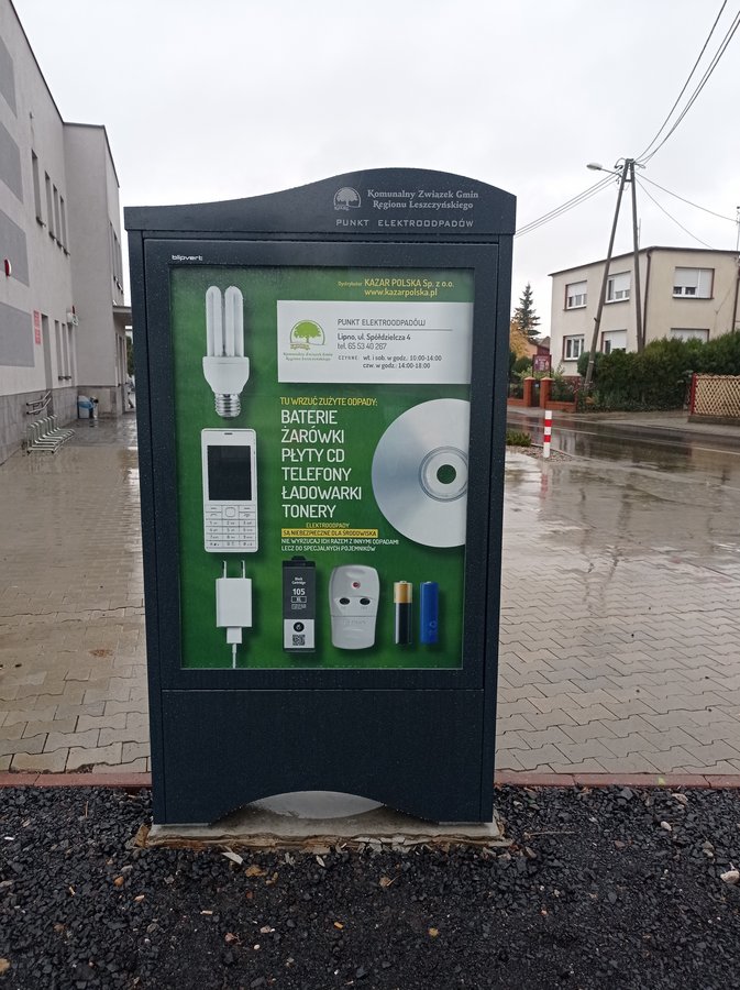 Od dziś mieszkańcy Leszna, Lipna i Wijewa mogą korzystać z tzw. Punktów Elektroodpadów. Są to urządzenia służące do zbierania małogabarytowego zużytego sprzętu elektrycznego i elektronicznego. Urządzenia te wyposażone są w tuby, do których można wrzucać odpady takie jak płyty CD, baterie i akumulatory, tonery z drukarek, telefony i ładowarki oraz żarówki energooszczędne. To kolejne pojemniki, w które Związek sukcesywnie wyposaża gminy – pierwsze stanęły w Rawiczu i Gostyniu w ubiegłym roku. Wszystko po to, by ułatwić mieszkańcom pozbywanie się odpadów problemowych. Należy bowiem pamiętać, że zużyty sprzęt elektryczny i elektroniczny to odpady niebezpieczne i absolutnie nie można ich wrzucać razem z innymi odpadami.