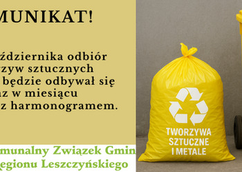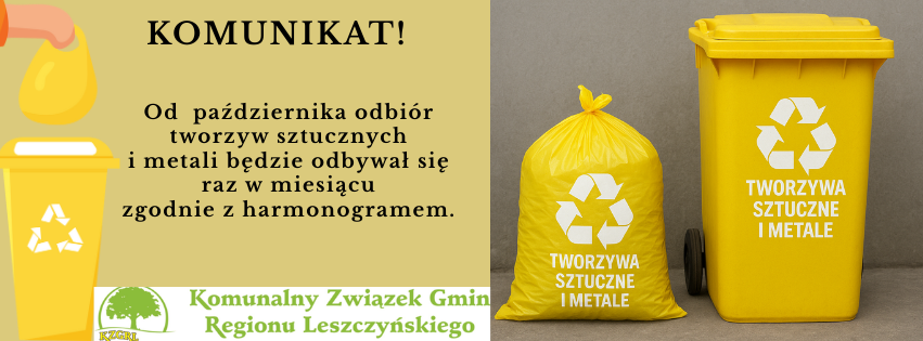Od października ponownie odbiór odpadów -metali i tworzyw sztucznych z nieruchomości jednorodzinnych 1 raz w miesiącu zgodnie z harmonogramem.