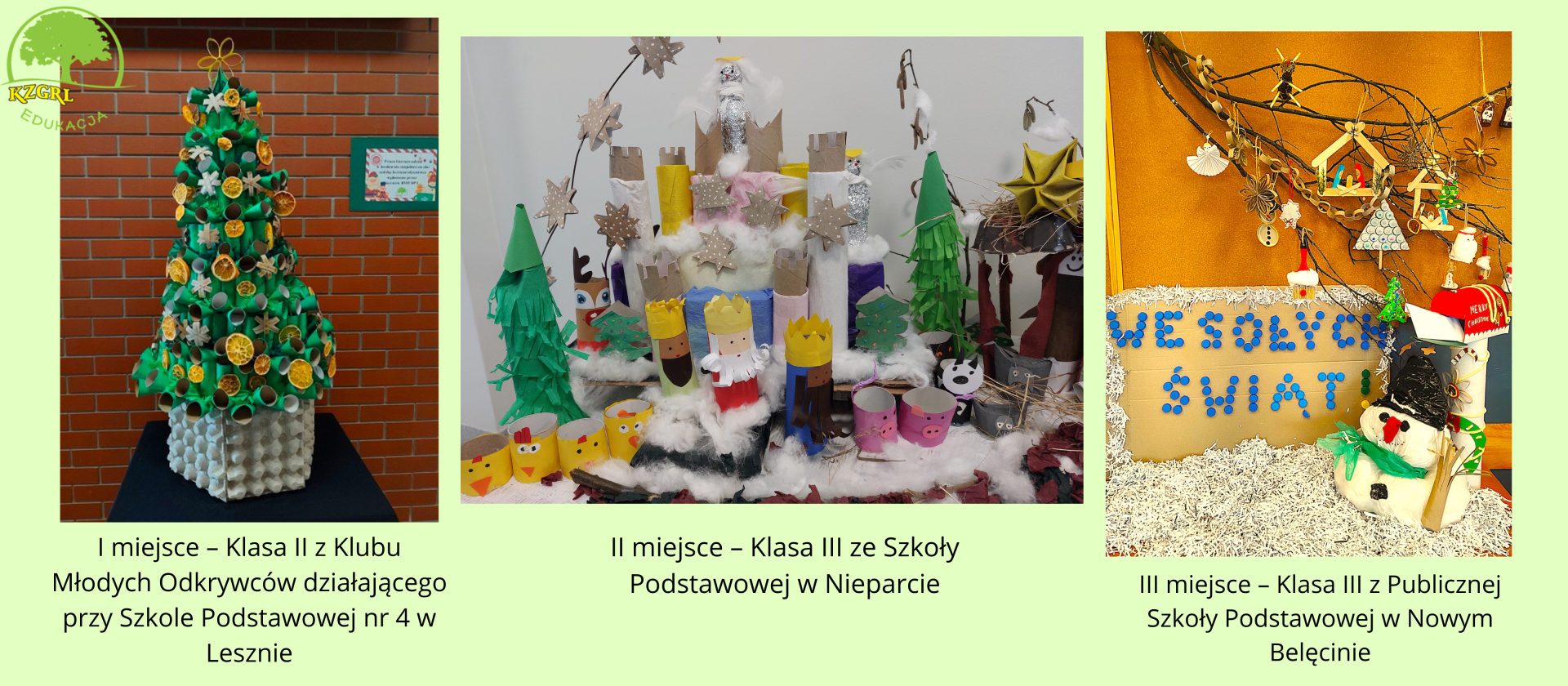 Znamy już zwycięzców konkursu pn. „EKO DEKORACJA ŚWIĄTECZNA 2025”, który polegał na wykonaniu dekoracji świątecznej z odpadów. Frekwencja dopisała – do konkursu zgłosiło się 27 klas ze szkół podstawowych z terenu działalności KZGRL.