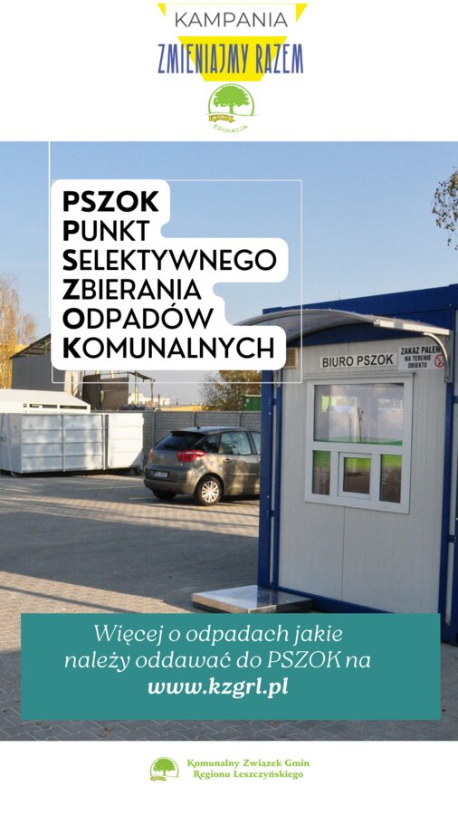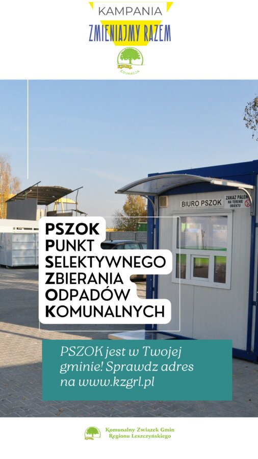PSZOK czyli Punkt Selektywnego Zbierania Odpadów Komunalnych to miejsce, do którego mieszkańcy gmin będących członkami Komunalnego Związku Gmin Regionu Leszczyńskiego powinni oddać zebrane selektywnie odpady.